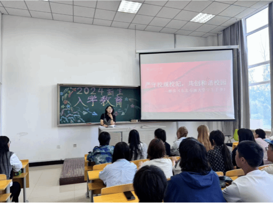 为进一步增强新生自我教育、自我管理、自我服务意识,促进新生对各项规章制度进一步学习,提高遵规守纪的意识,营造良好的学风氛围,best365体育官方网站于8月30日下午面向全体2024级新生开展了《员工手册》专题学习活动。本次会议由best365体育官方网站党委副书记张丽坤主讲,2024级全体新生参加。