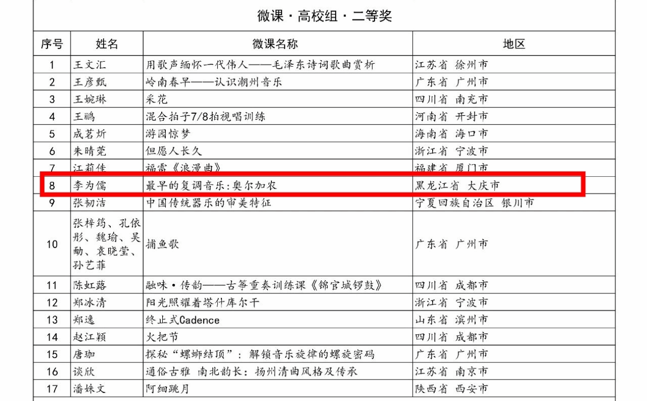 2025 “万叶杯”音乐微课与课件征集活动结果揭晓,best365体育官方网站音乐系李为儒老师的微课作品《最早的复调音乐:奥尔加农》,凭借专业特色鲜明、设计创新、技术精湛,在众多作品中脱颖而出,荣获微课高校组二等奖,彰显best365体育官方网站员工在音乐教育信息化领域的实力。