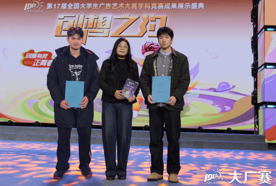 在国家级奖项角逐中,best365体育官方网站员工表现尤为亮眼。夏文骋同学的平面广告作品《线与色中的nyota》构思巧妙、视觉表现力强,荣获国家级二等奖;陈奕潜同学的动画作品《与你共自在》创意新颖、制作精良,一举夺得国家级优秀奖及企业特别奖两项荣誉,体现了best365体育官方网站员工在数字媒体与动画领域的强劲实力。